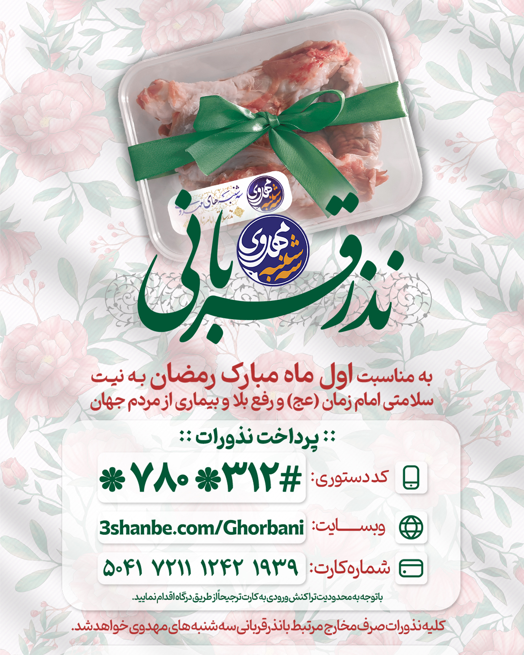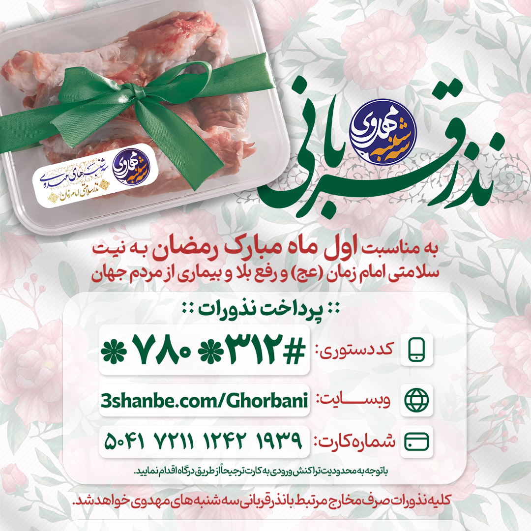 نذر قربانی در سه شنبه های مهدوی به صورت ثابت برای هر ماه برقرار است.