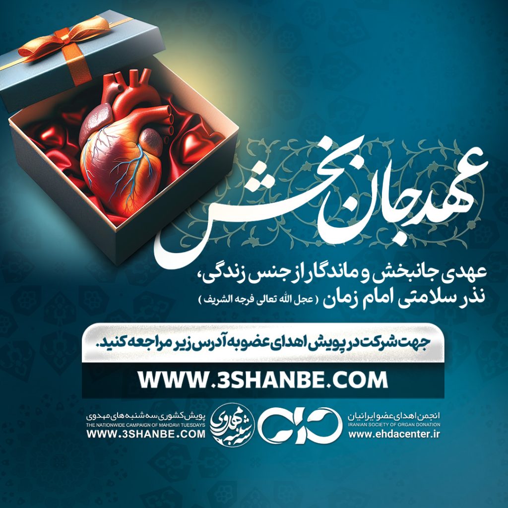 در تقویم انتظار، سهشنبهها فرصتی است برای تجدید عهد با امام زمان (عج)؛ عهدی از جنس خدمت، بخشش و امید. پویش «عهد جانبخش» با الهام از سهشنبههای مهدوی، به مناسبت روز ملی اهدای عضو (۳۱ اردیبهشت)، فرصتی فراهم کرده است تا با یک اقدام آگاهانه، گامی مؤثر در مسیر نذر سلامتی حضرت ولیعصر (عج) برداشته شود.